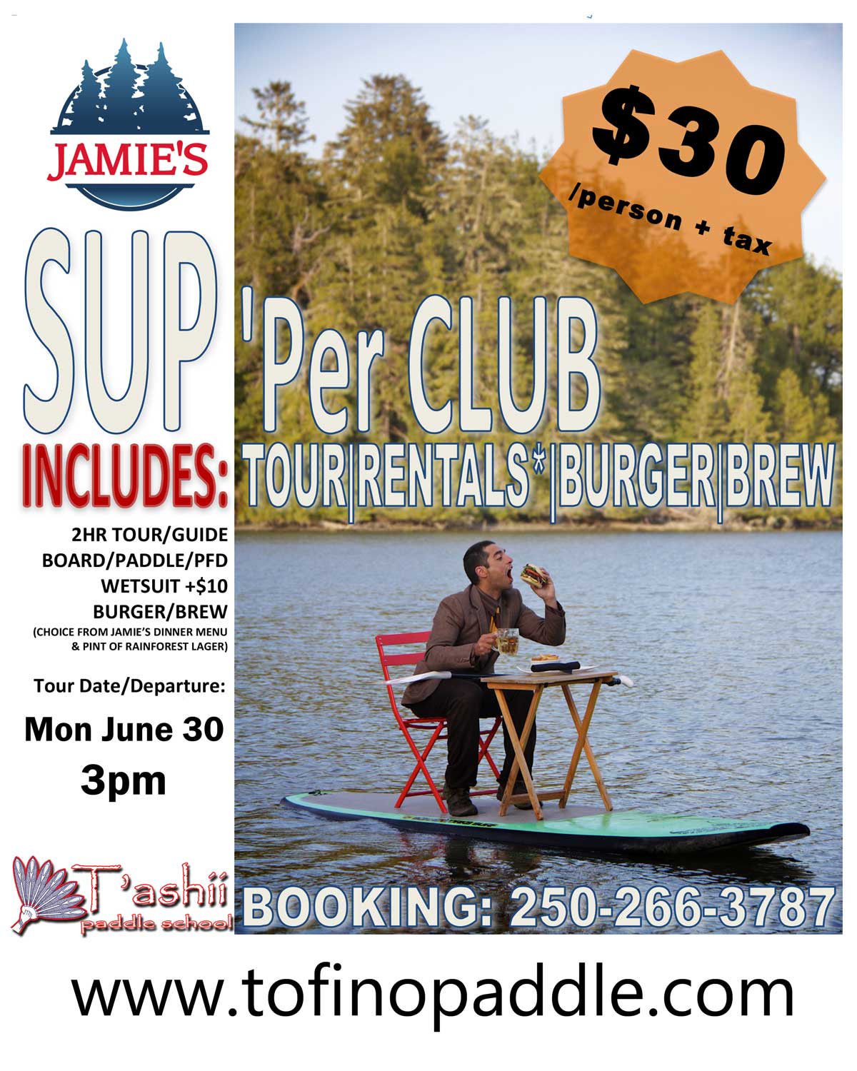 A very special promotional offer from T’ashii Paddle School and Jamie’s Rainforest Inn. Join the SUP’per club tour Today at 3pm.